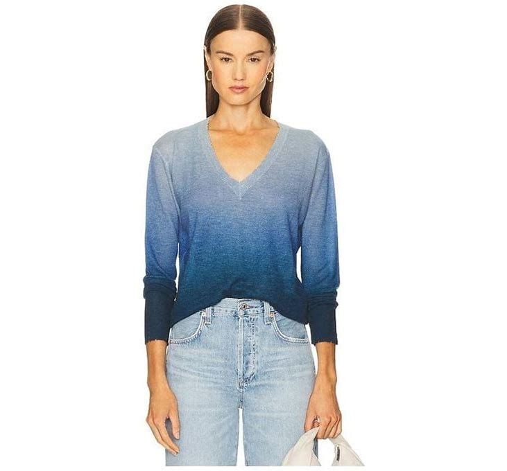 Autumn Cashmere W Ombre Print Distressed Edge V Neck